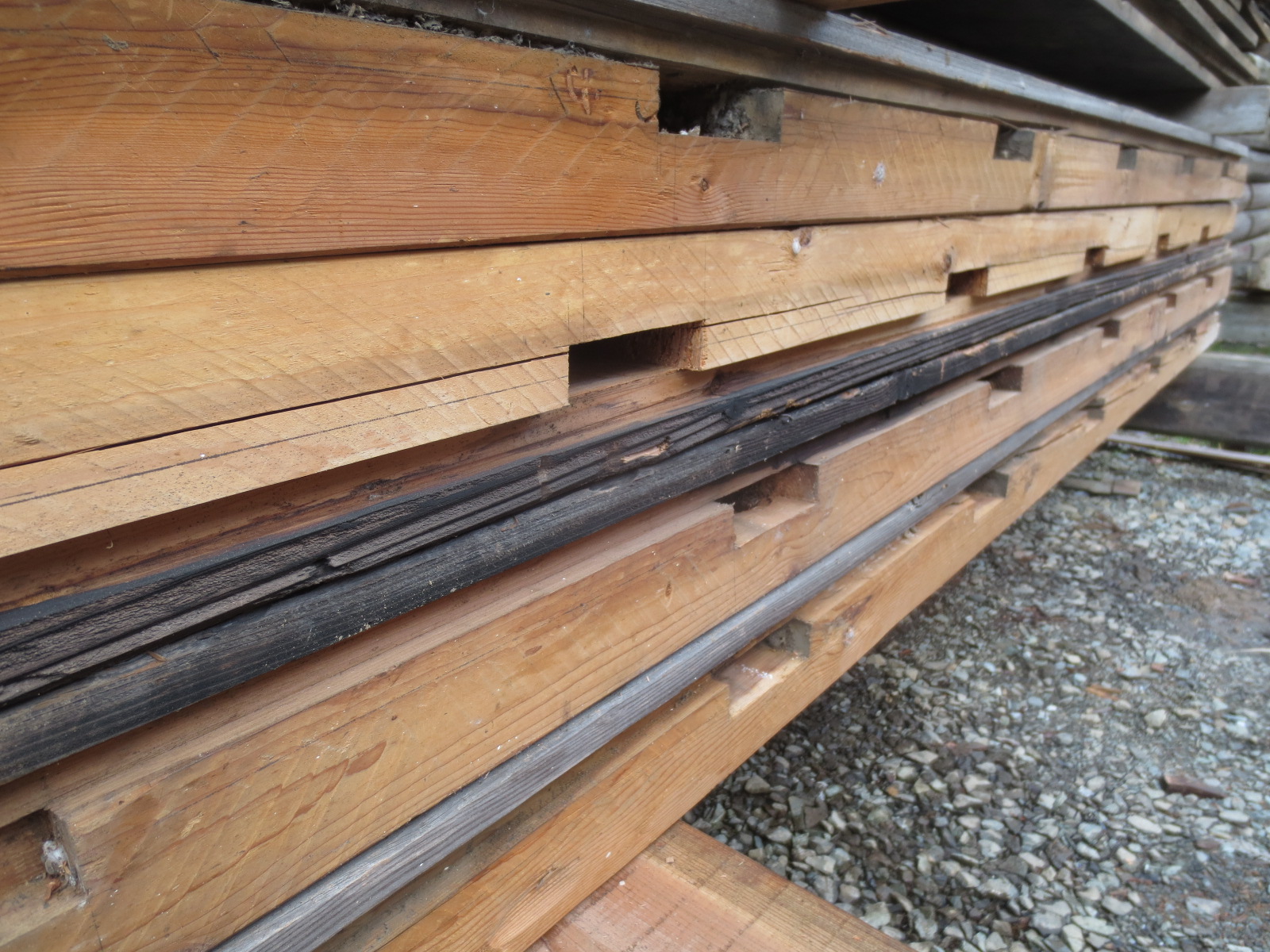 築100年以上の板蔵に使われていた一面グレーの柱材です。