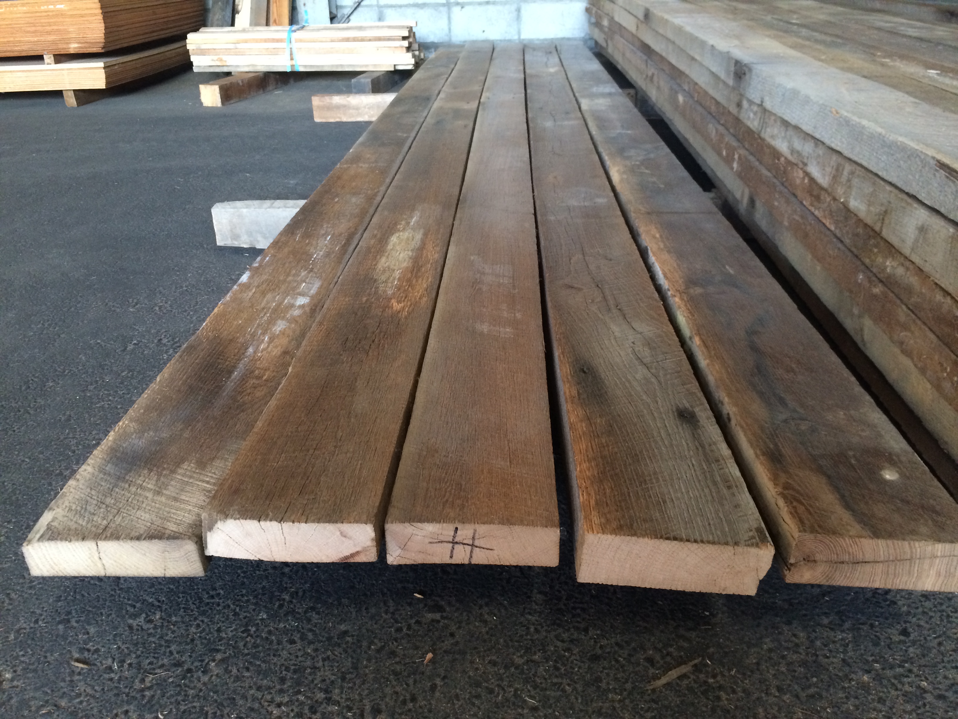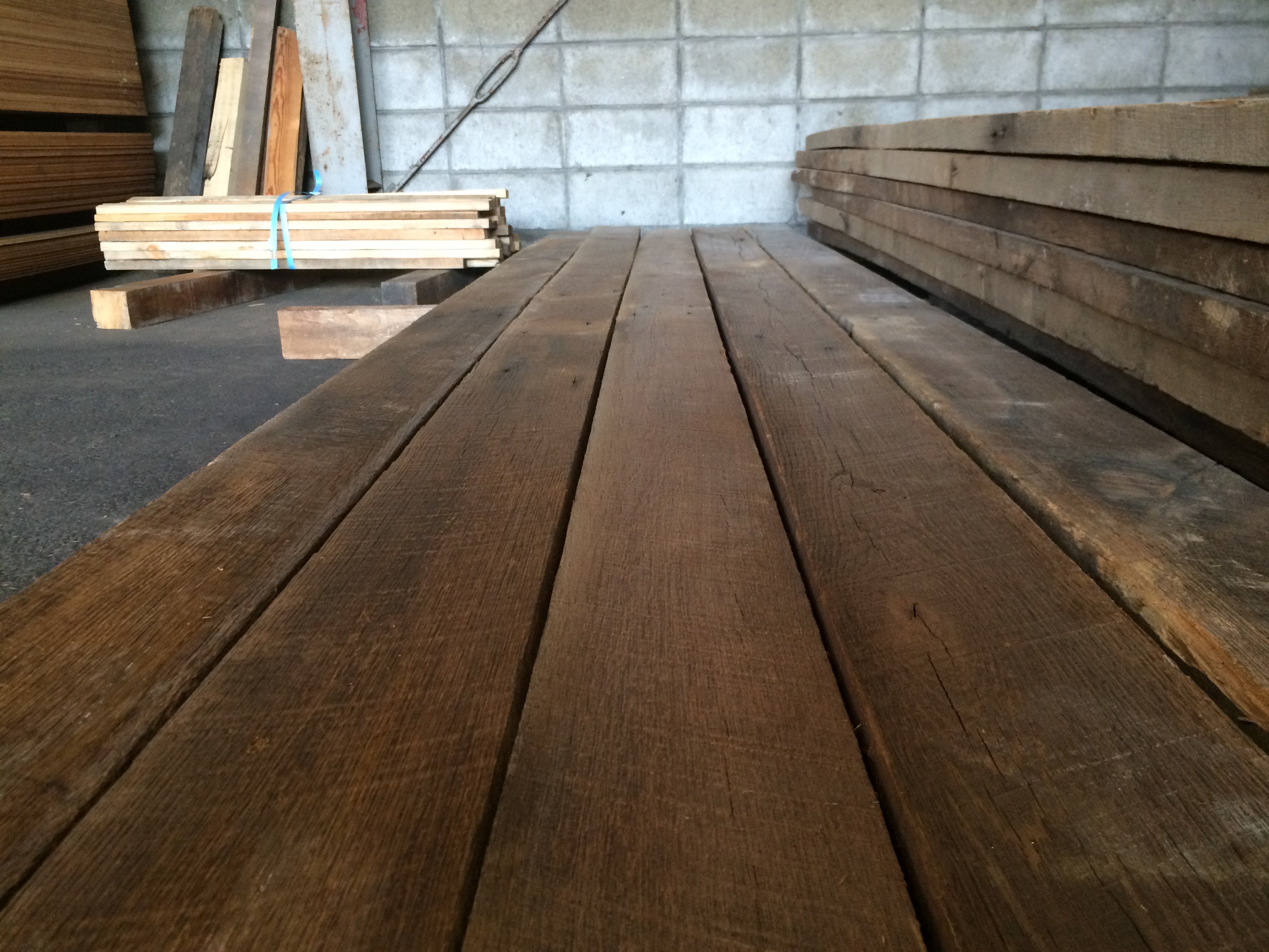試しに短い材料を1枚クリーニングしてみましたので下記写真をご覧ください。全面の写真を掲載しております。なかなか上質の古材です。