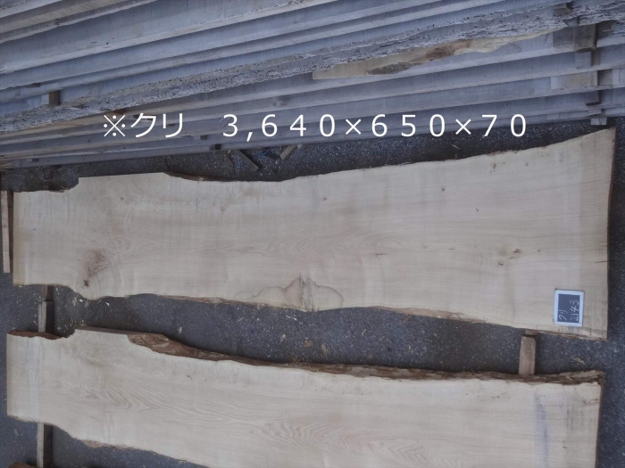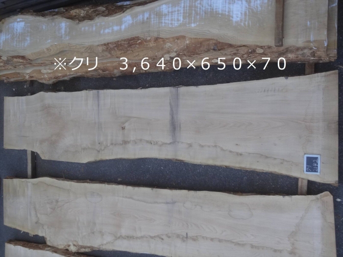 6-1) クリ 3640 x 650 x 70 木表:無地 元750~中間640~末560巾
