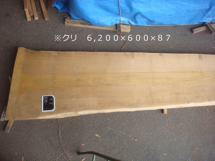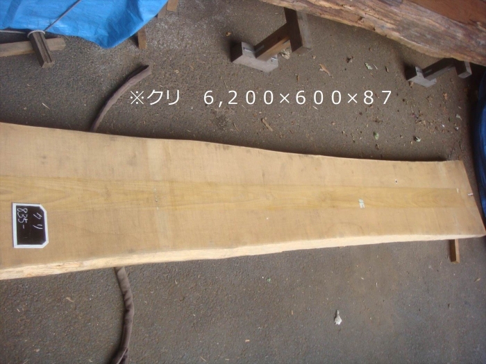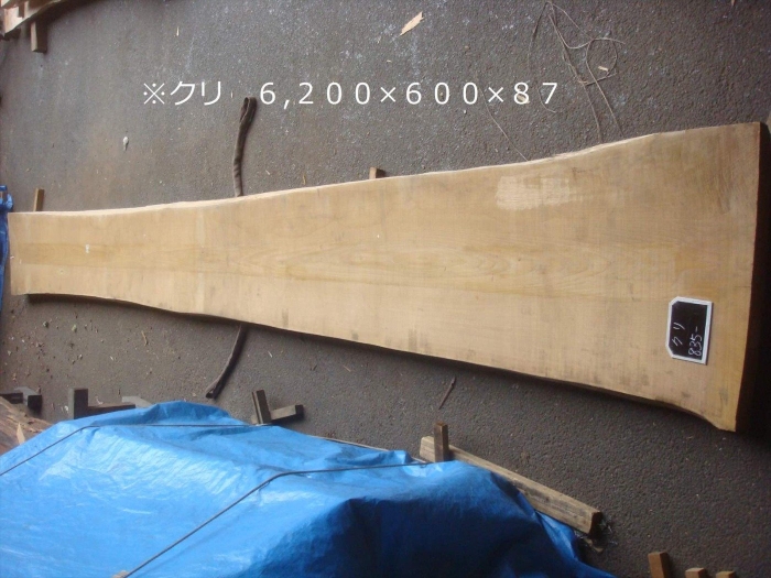 1) クリ 6200 x 600 x 87(画像3枚) 木表:無地 元780~中間600~末630巾