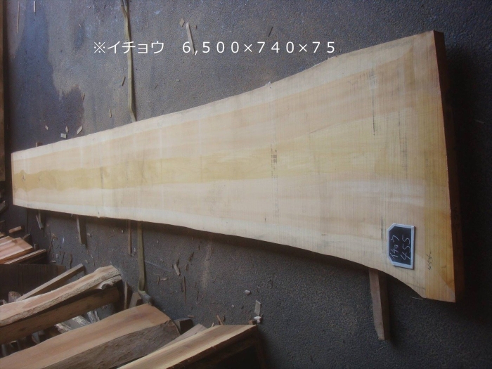 8) イチョウ 6500 x 740 x 75 木表:元から5200に節1個