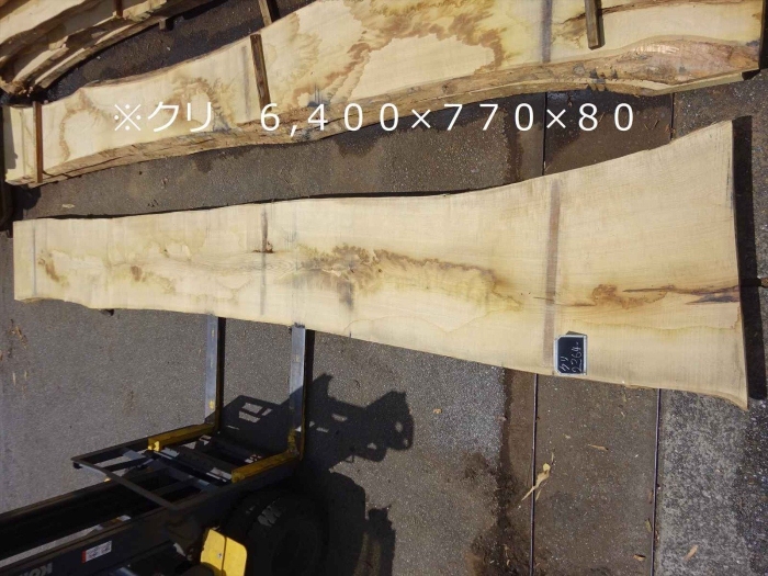 2) クリ 6400 x 770 x 80 木表:元1090~中間770~末790巾 芯割れ 入皮あり