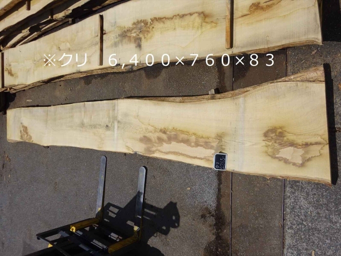 3) クリ 6400 x 760 x 83 木表:元900~中間770~末660 35ミリ節1個