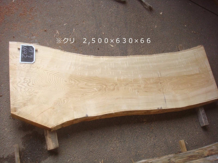 4)クリ 2500 x 630 x 66 木表:杢あり 元から2150・片幅210に干割れ
