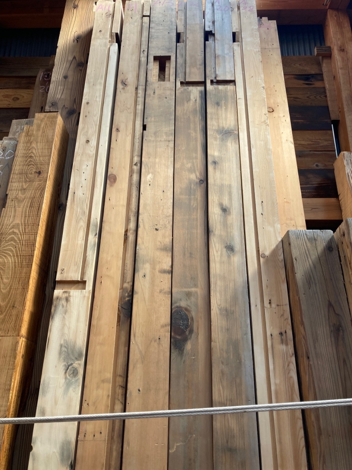 120x120程度は 今回入荷した材は溝はあってもホゾがありません。 但し長さは3500程度まであります。