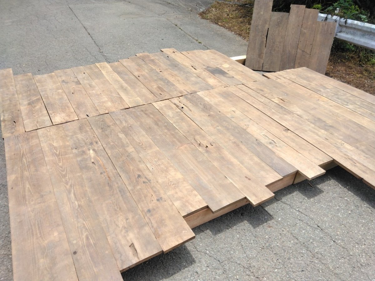 | サイズ | 長さ:850~2100mm程度(*1500~1800mmメイン) 巾:160~280mm程度 厚さ:25mm程度 40枚 |