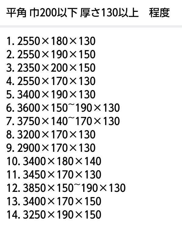 | サイズ | 巾:140~200以下程度 厚さ:130~150程度 14本(明細あり) |