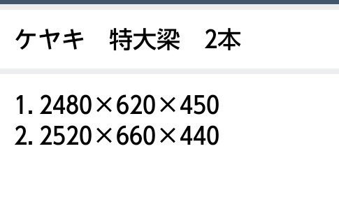 電話でお問い合わせいただく際は「TO240913 ケヤキ 特大梁」とお問い合わせください。
