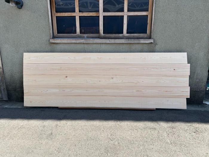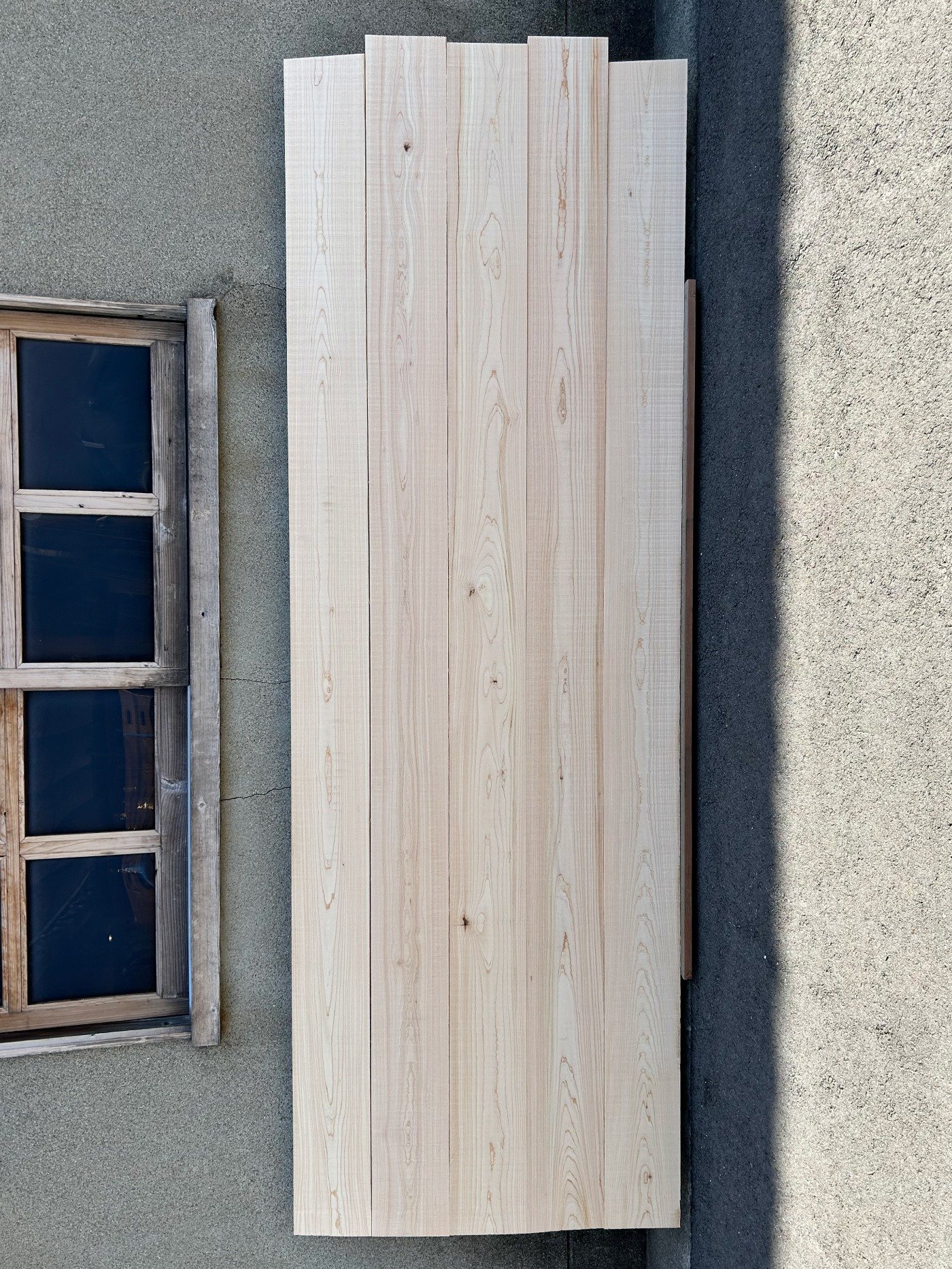 電話でお問い合わせいただく際は「新材 桧 上小無地 帯ノコ+ブラッシング 3m x 200 x 23」とお問い合わせください。