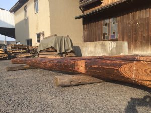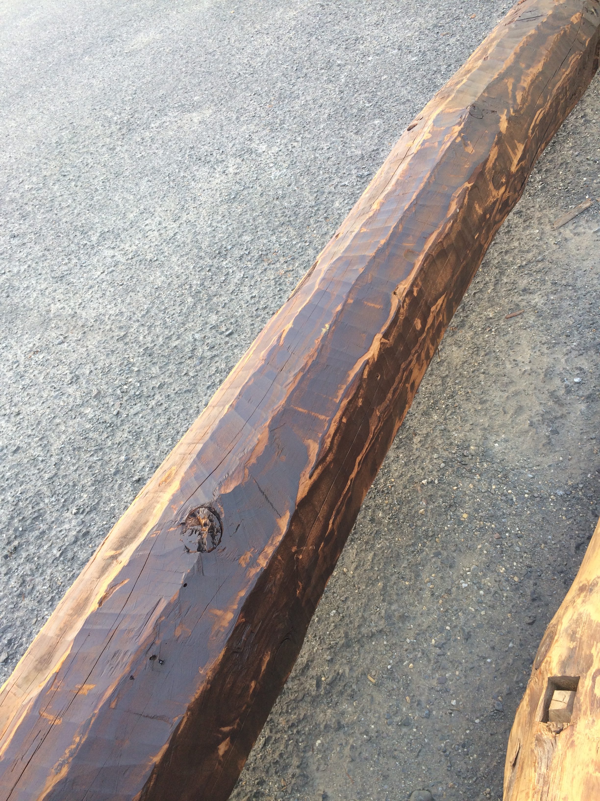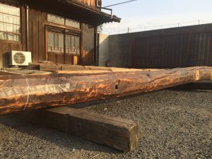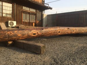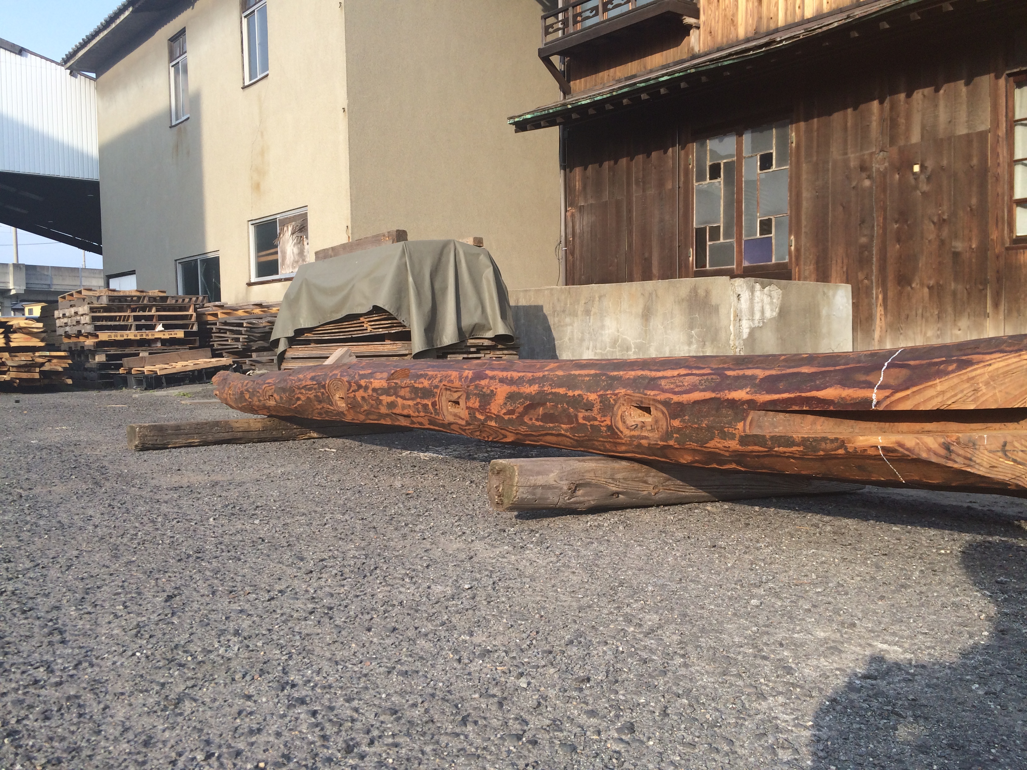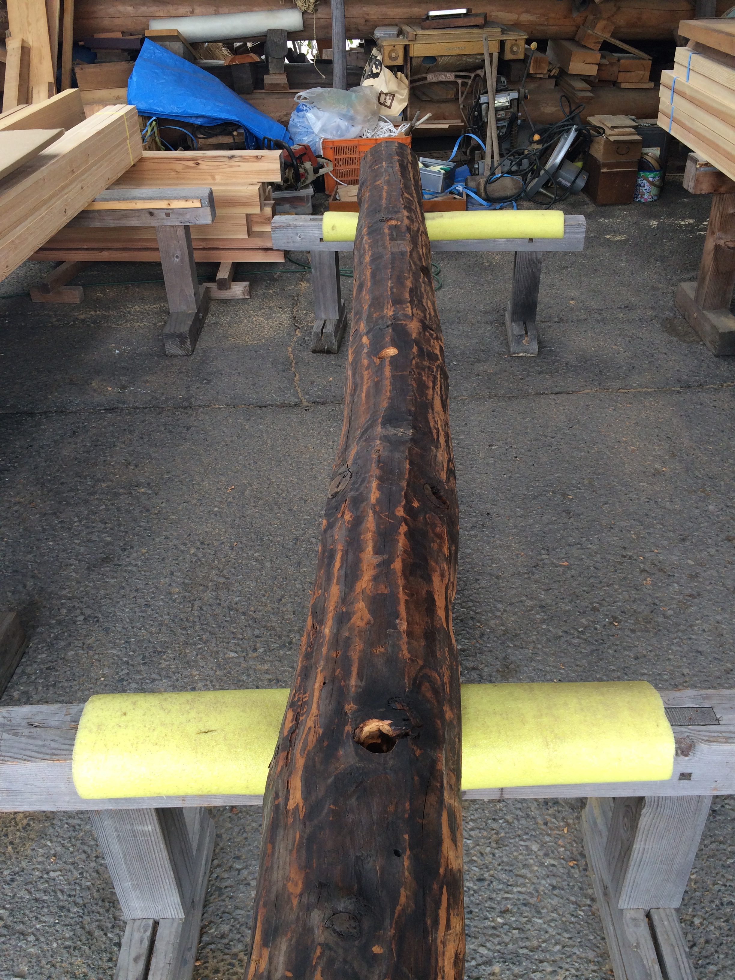 丸太は湾曲しています。常識的にはこのように両側が下がる向きで使用します。