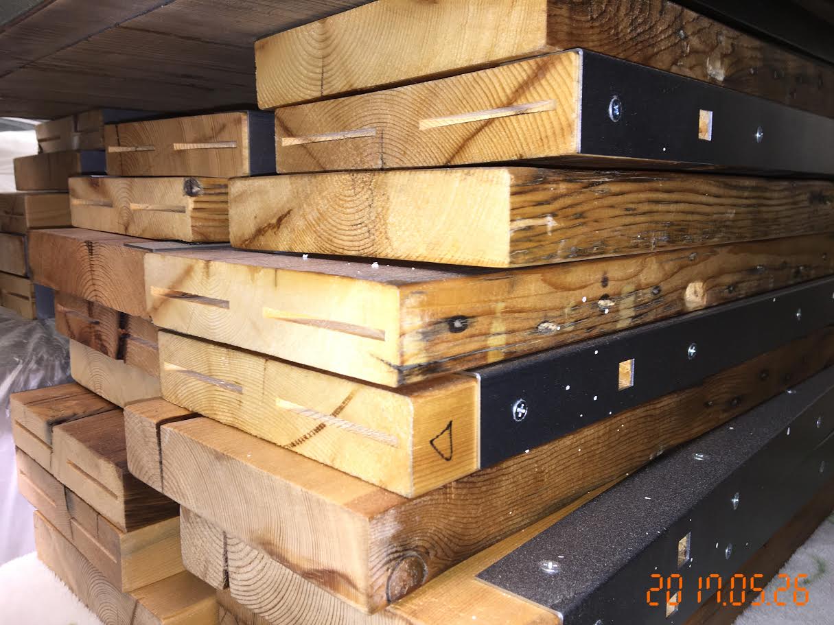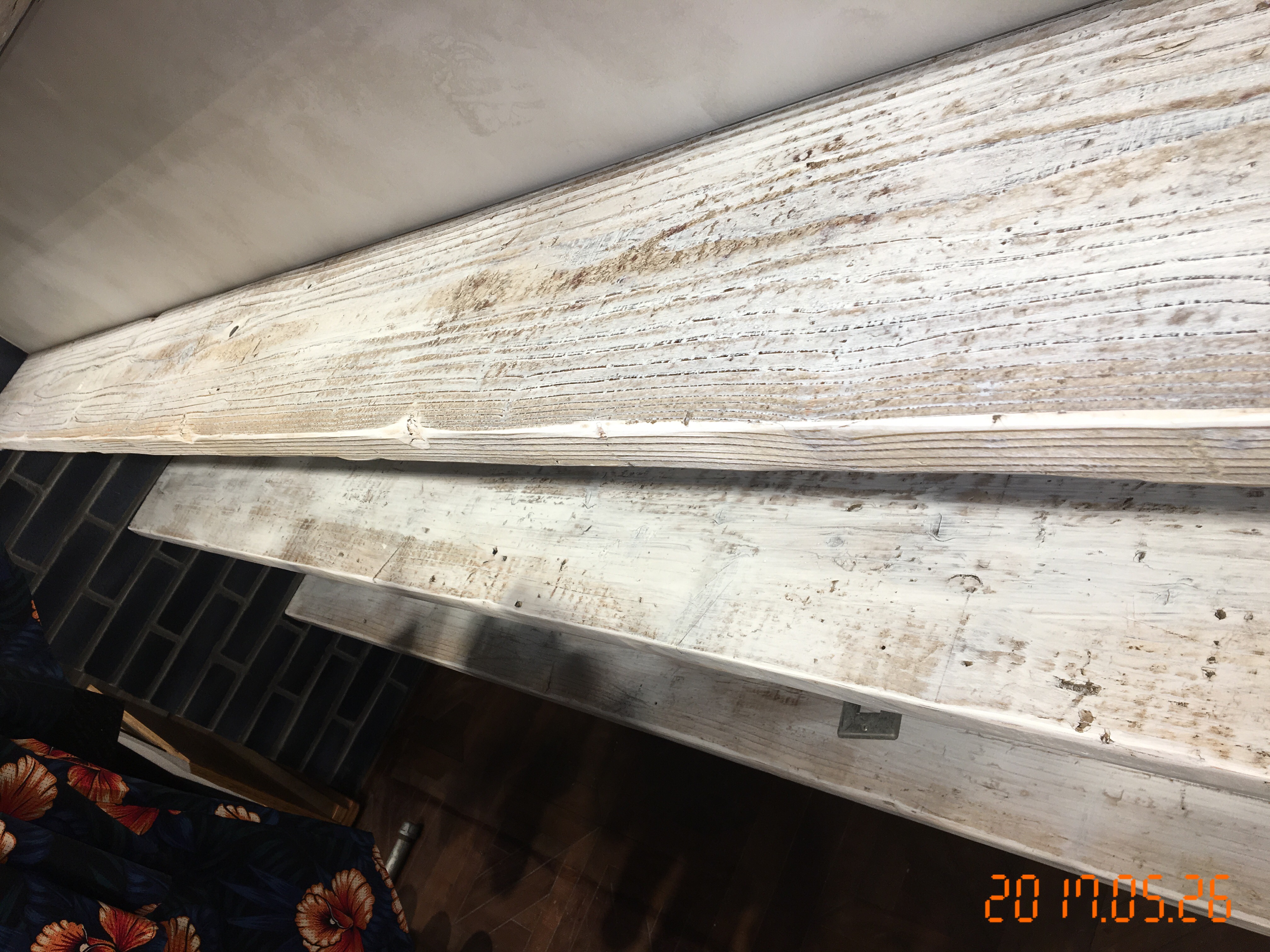 仕様では米松古材となっておりましたが、写真を見る限り足場板で制作されているのではないでしょうか?この辺りもこだわりがないのであれば、足場板でお見積りいたします。