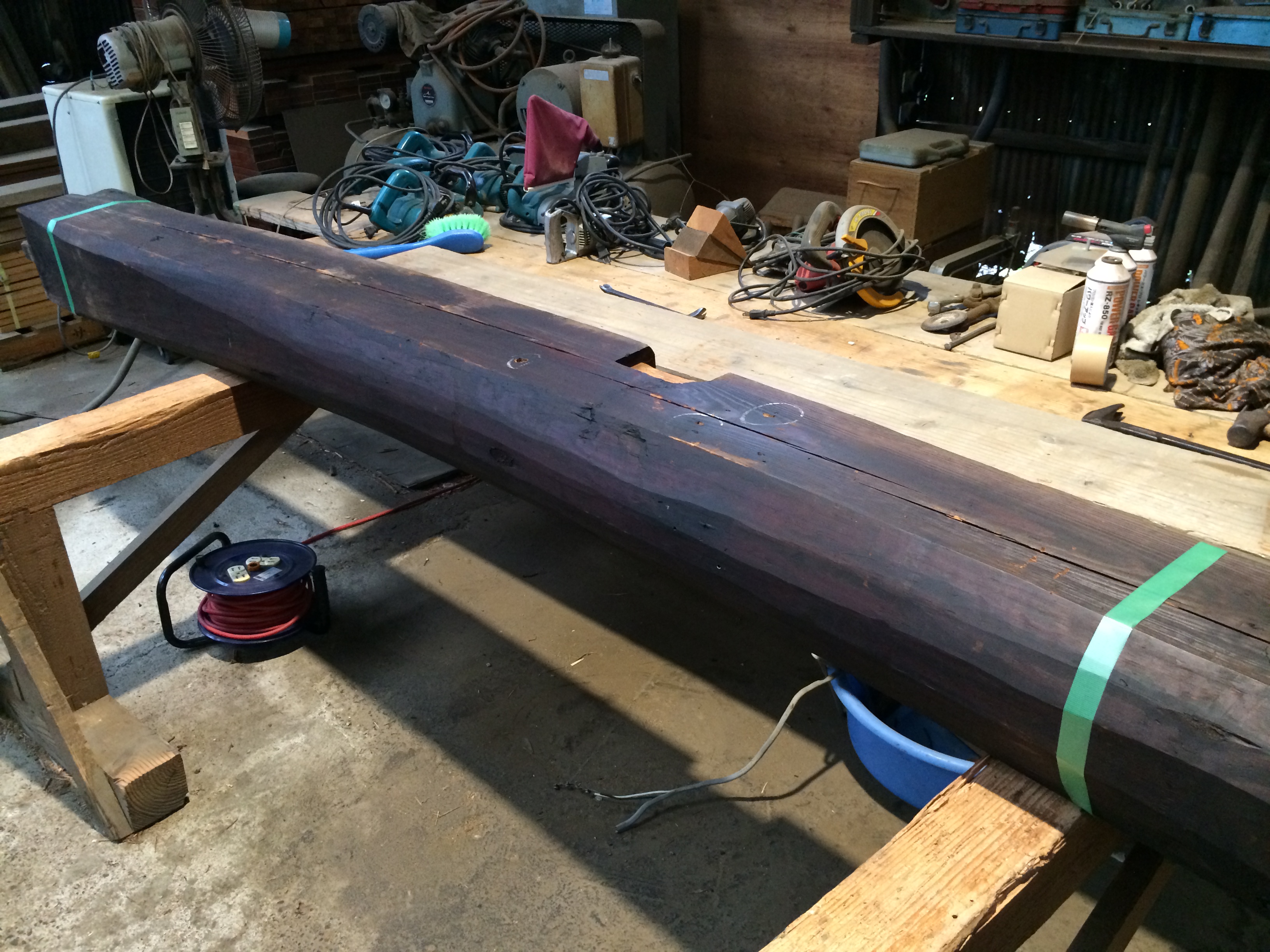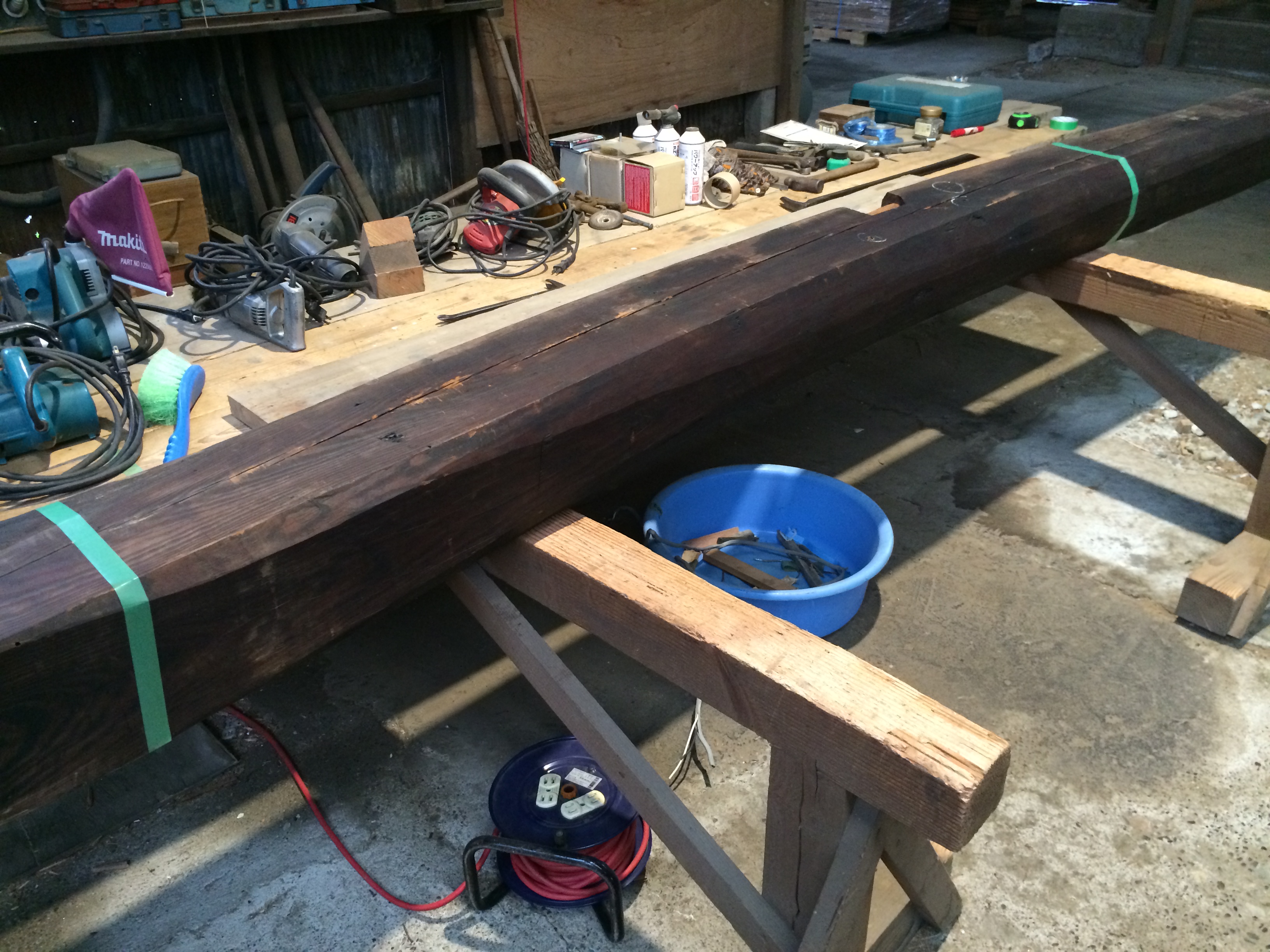 電話でお問い合わせいただく際は「HQ150320A 古材 丸太(タイコ型) 3500 x 215前後 x 190~250」とお問い合わせください。