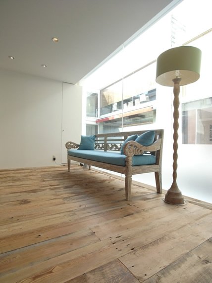 納屋や倉庫の内部から採取された古材は、ノコ目跡や当時の風合いが100年以上経過した今でもそのまま保たれており、当時のどこか懐かしい温かみのある素材感がとても人気の板材です。貼りあがった時の存在感は抜群です。古材好きが最後に必ず行きつく商品としても知られています。