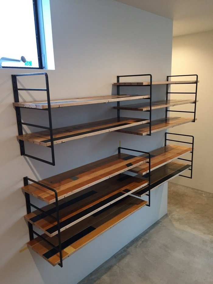 バスケットボールやバレーボールなど屋内スポーツが行われた体育館や運動施設から回収されたメープルフローリングです。カラフルなコートラインが空間に散りばめられ、軽快で遊び心のある外観を作り出します。