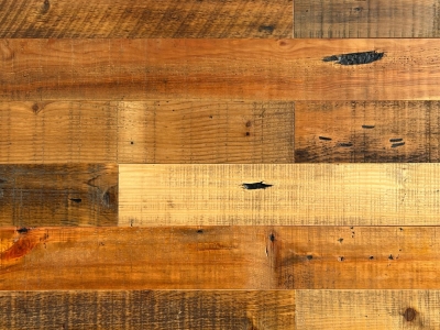古材の表面をサンディング処理し、なめらかさを重視した商品です。古材の粗々しい風合いは魅力があるものの、ささくれやケバ立ちが気になるお客様や、受け入れにくい用途に向けて開発しました。無塗装はソフトなイメージですが、ウレタンクリア塗装を施すとより重厚なイメージに仕上がり古材感が際立ちます。