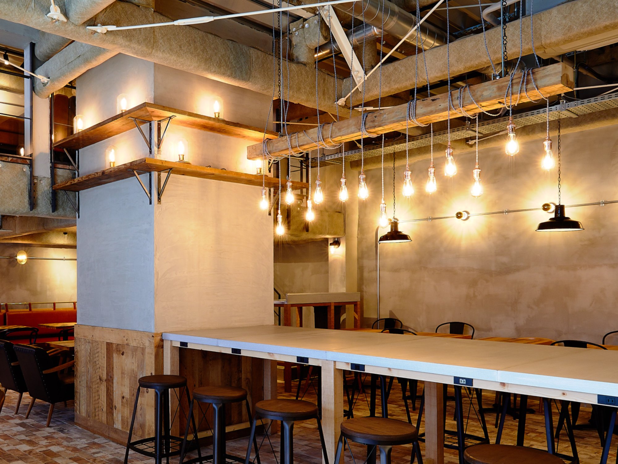 USボード ブラウンに不燃処理を施し、不燃材料として仕上げました。公共施設や百貨店・ショッピングモール・アーケード等の商業施設など、不燃材料の使用が義務付けられている場所においても古材を利用することができます。