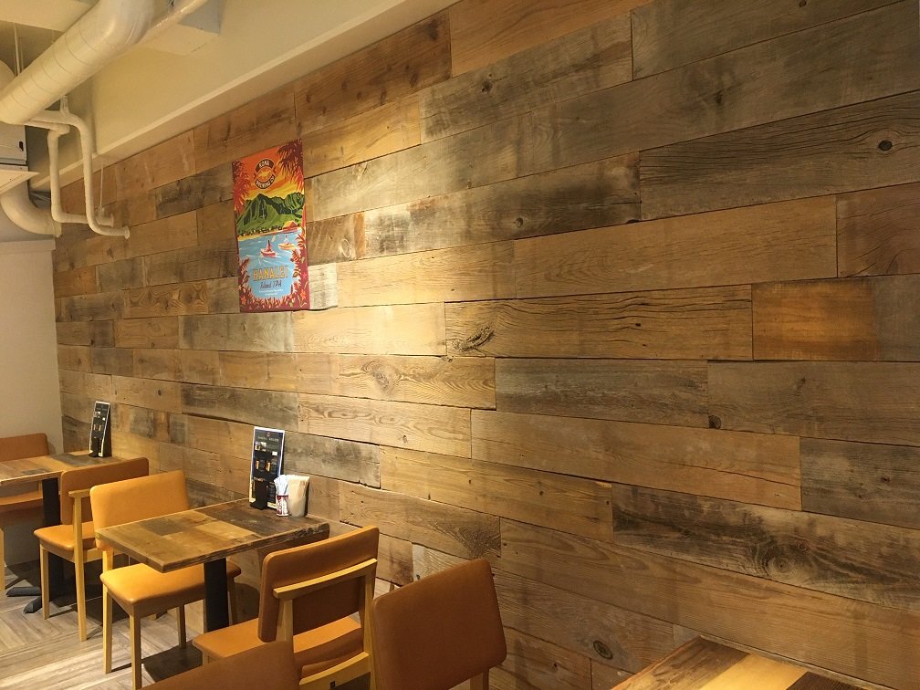 グレーボードに不燃処理を施し、不燃材料として仕上げました。公共施設や百貨店・ショッピングモール・アーケード等の商業施設など、不燃材料の使用が義務付けられている場所においても古材を利用することができます。