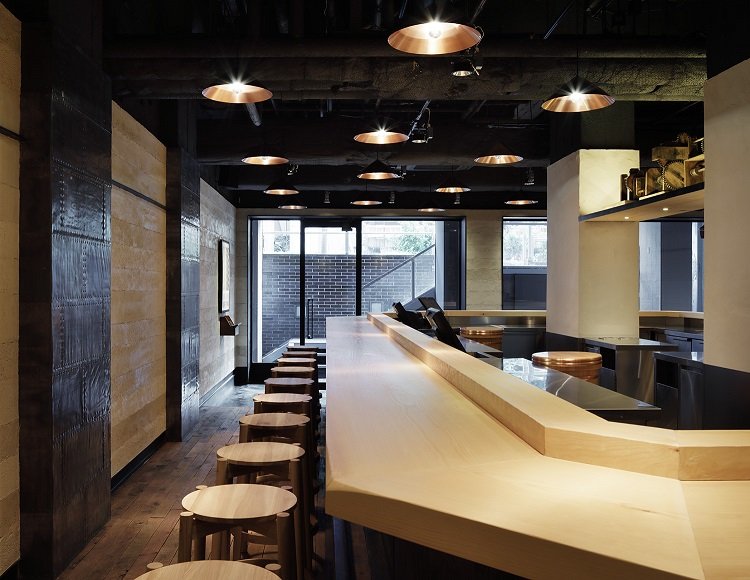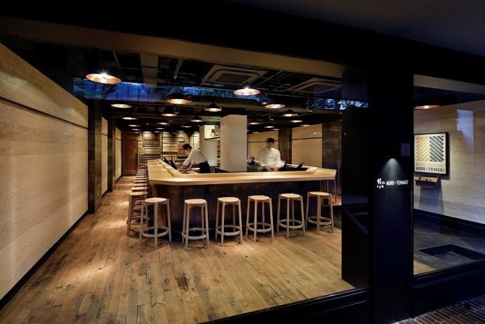 重厚感溢れるメープルの輸入古材が人気和食店に。