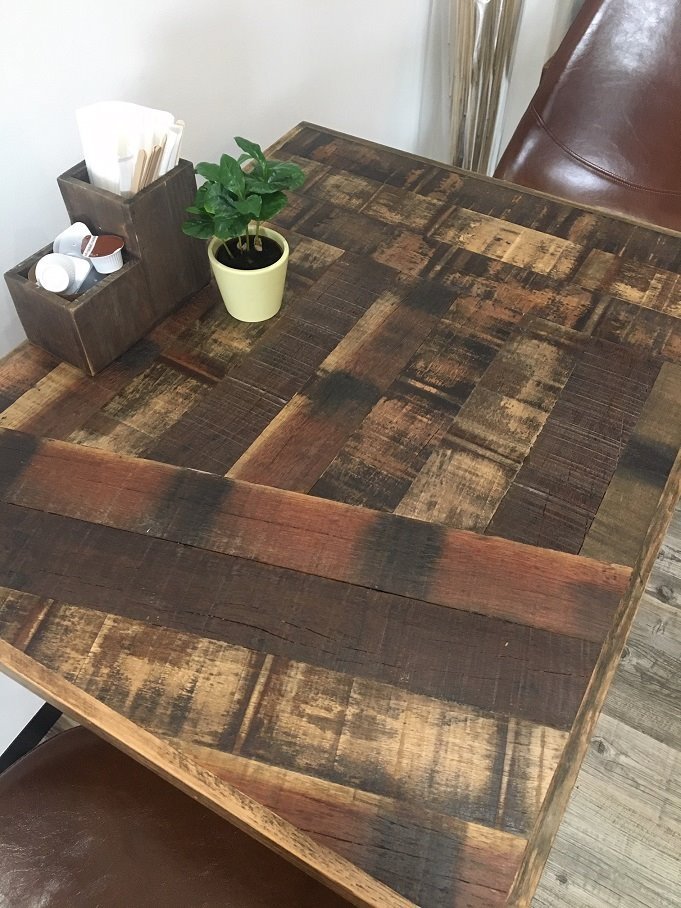世界中を行き来する海上貨物用コンテナーの床板に使用されていた素材です。