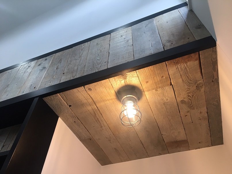 グレーボードに不燃処理を施し、不燃材料として仕上げました。公共施設や百貨店・ショッピングモール・アーケード等の商業施設など、不燃材料の使用が義務付けられている場所においても古材を利用することができます。