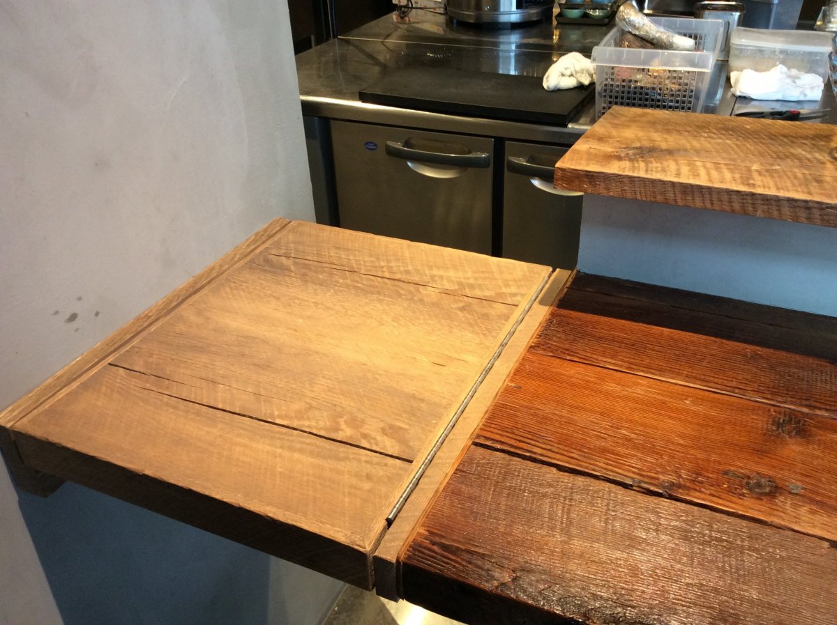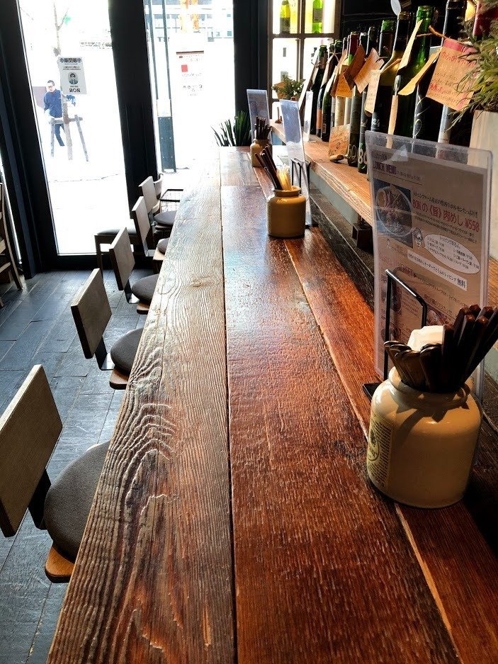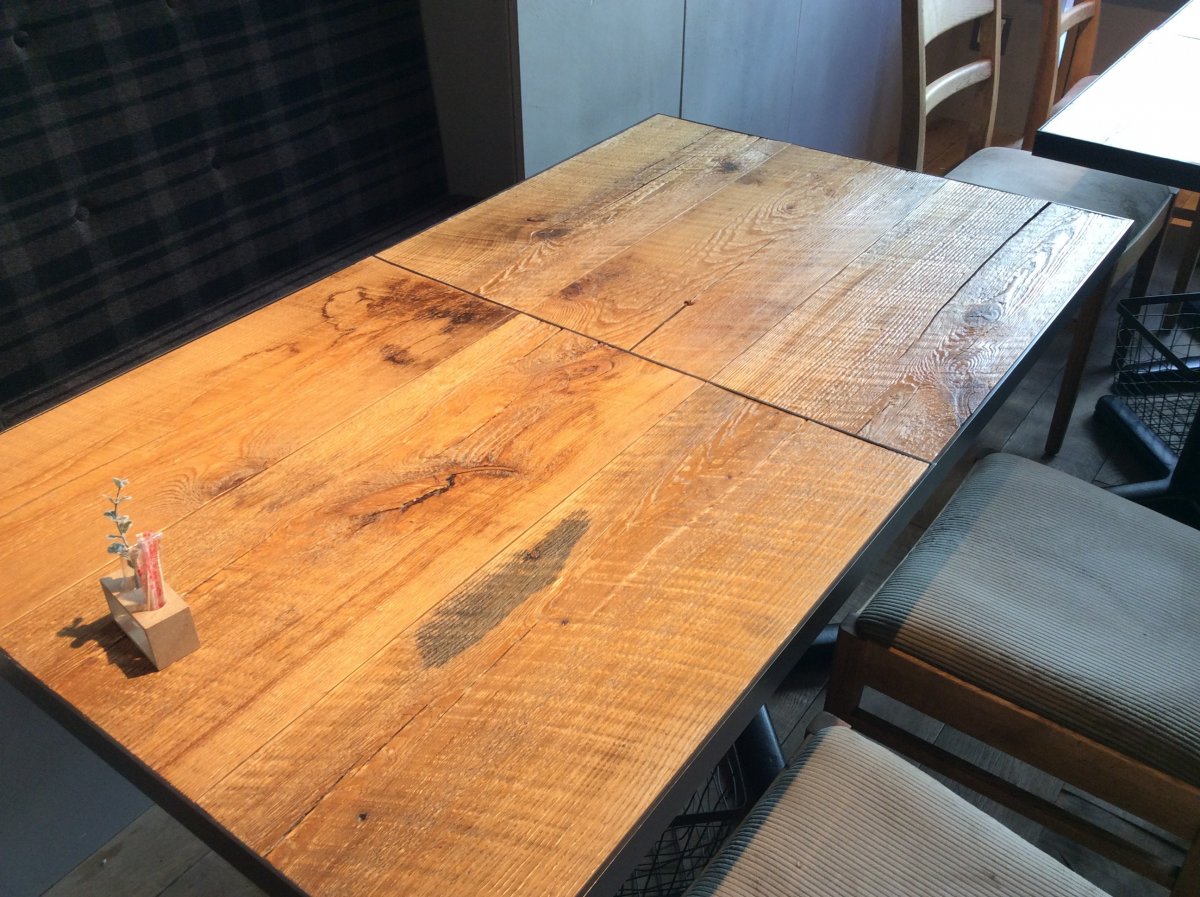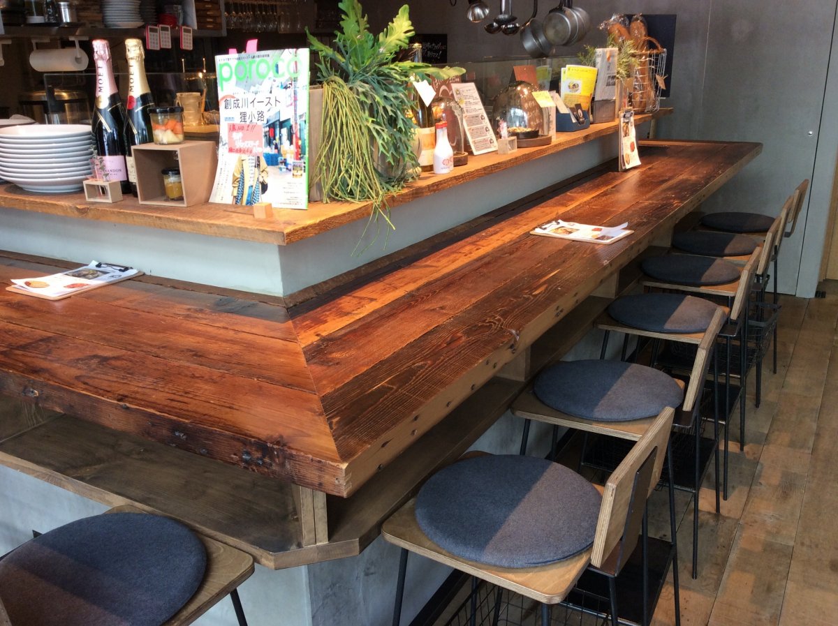 こちらの Bistro BON tabloid table には、USボード2インチとUSボードブラウンをカウンター天板・テーブル天板にご利用していただきました。