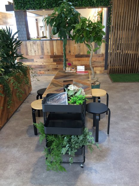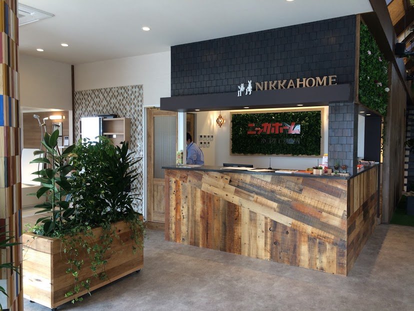 ニッカホーム小倉ショールーム様 古材テーブル、imondyパインを採用頂きました。