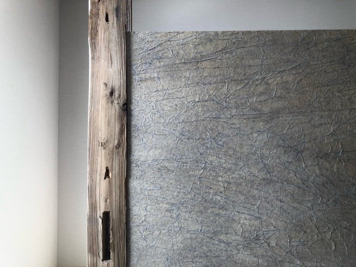 【愛媛 古材の施工例】一般住宅 使用場所: 柱・梁 松山市 住宅の活用事例、古材柱と壁面のテクスチャーのマッチングが絶妙です。 設計:flow space design この施工例で使用している古材 柱 VIEW MORE