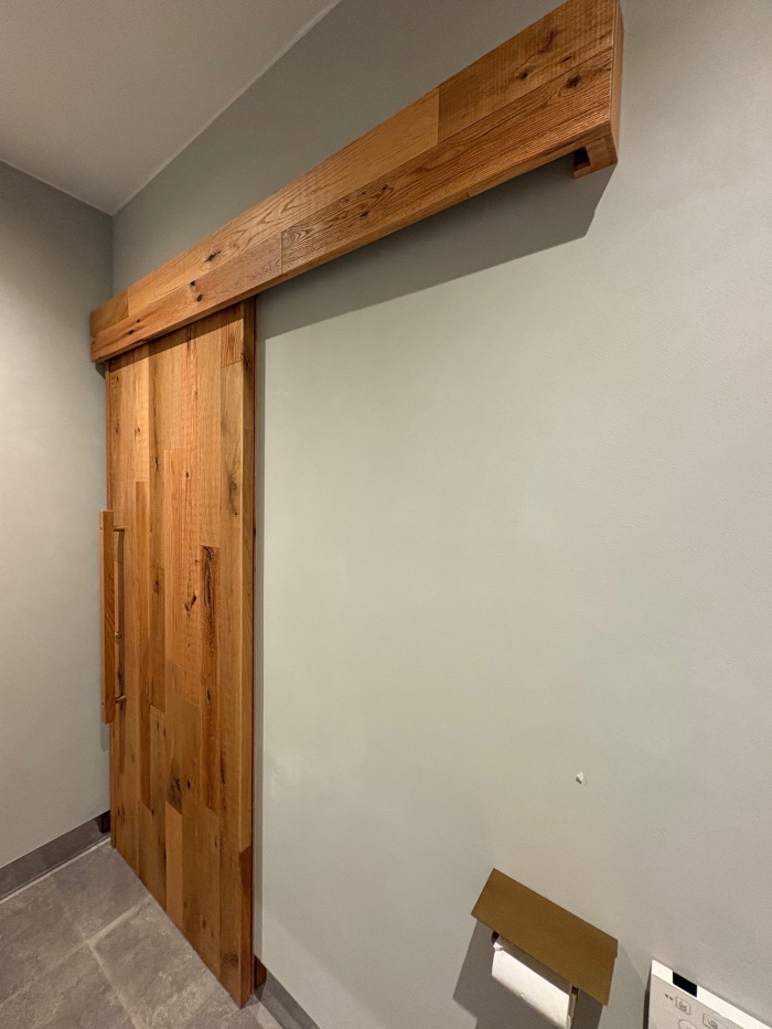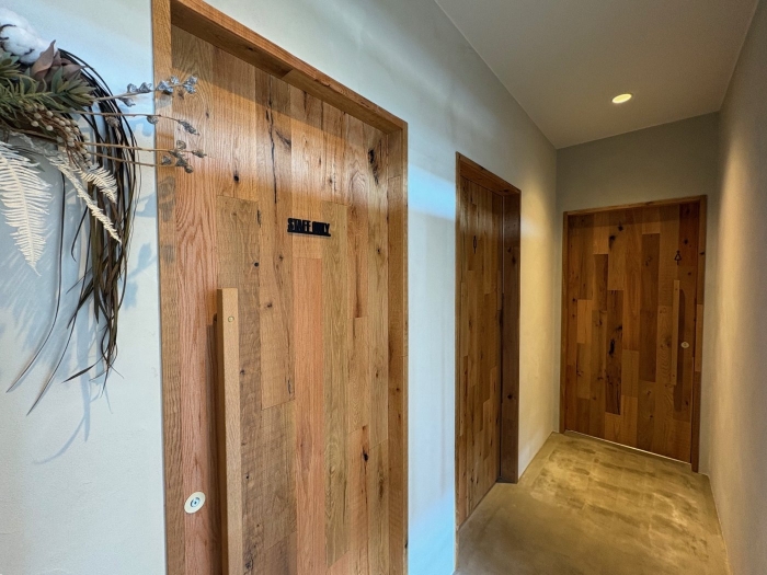 オーク古材の表面からわずかに内部に入った部分を使用し、古材感を残しつつも上品に仕上げました。木目を浮き立たせ、さらにサンディング処理でなめらかさを持たせることにより古材でありながら手触りの良いフローリング材です。
