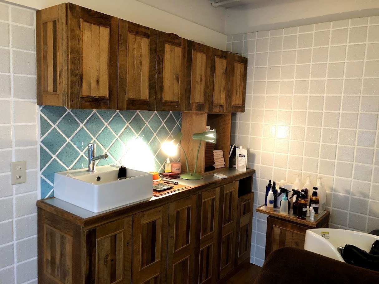 【美容室の施工事例】北海道札幌市 ヘアーサロン クロロム 使用場所: 壁・天井 , その他 札幌市中央区南1条西1丁目マナー白鳥ビル8階808 ウェブサイト この施工例で使用している古材 USボード ブラウン VIEW MORE