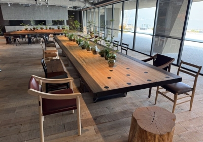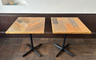 インドネシアの古民家などに使用されていた高級材「チーク」を再利用して製作した商品です。貴重な材料を無駄なく活用するため、職人が手作業で小さなパーツを一つ一つ丁寧に貼り合わせて作り上げた逸品です。様々な形状の木材とチークの高級感から生まれる唯一無二の表情をご堪能下さい。