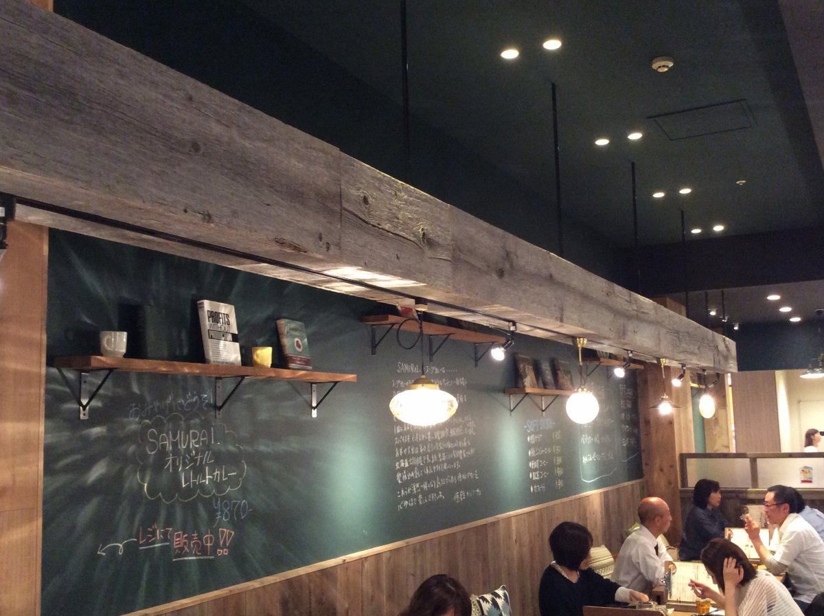 また店内の壁面部分は内装制限の対象範囲として「ユーズドプレーン」不燃タイプを採用いただいております。