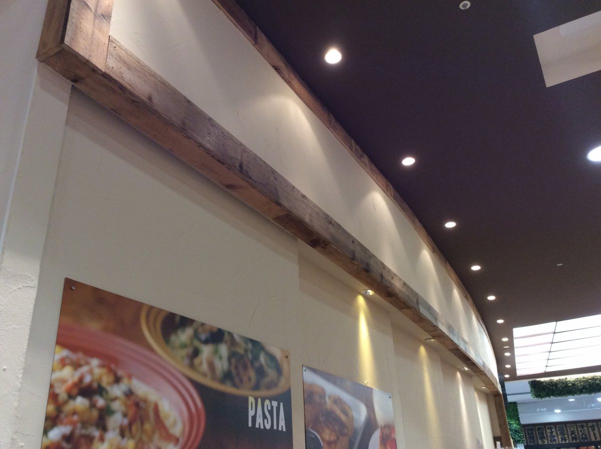店舗正面と店内サインボードの壁面飾りに USボード ブラウンタイプをご採用いただきました。