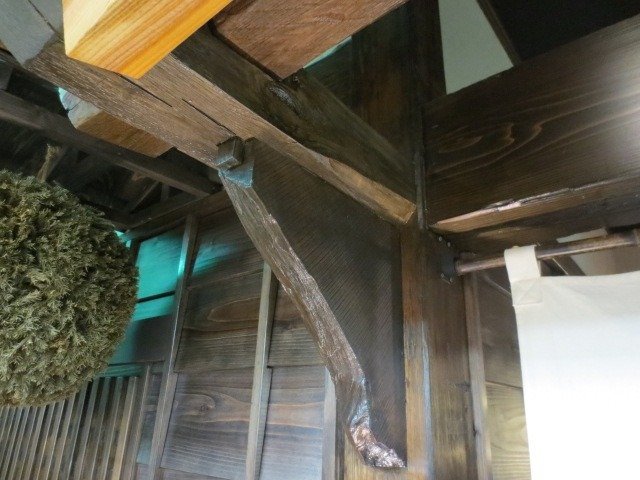 古材を薄くスライスした付梁(つけばり)付柱(つけばしら)です。既存の空間に貼り付けるだけで、最初から古材が埋め込まれているような重厚感ある空間に生まれ変わります。これも古材のもつ本物の質感がそうさせるのです。
